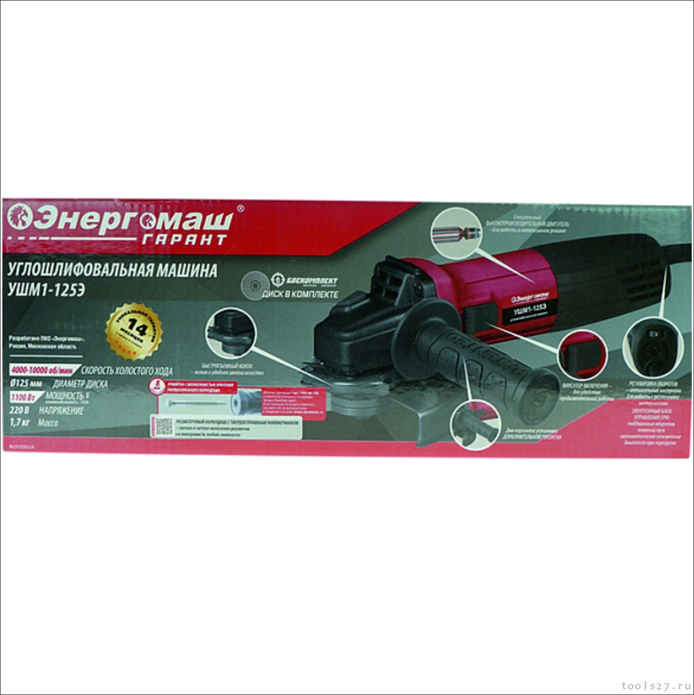 Болгарка (УШМ) Энергомаш ГАРАНТ УШМ1-125Э (2156)