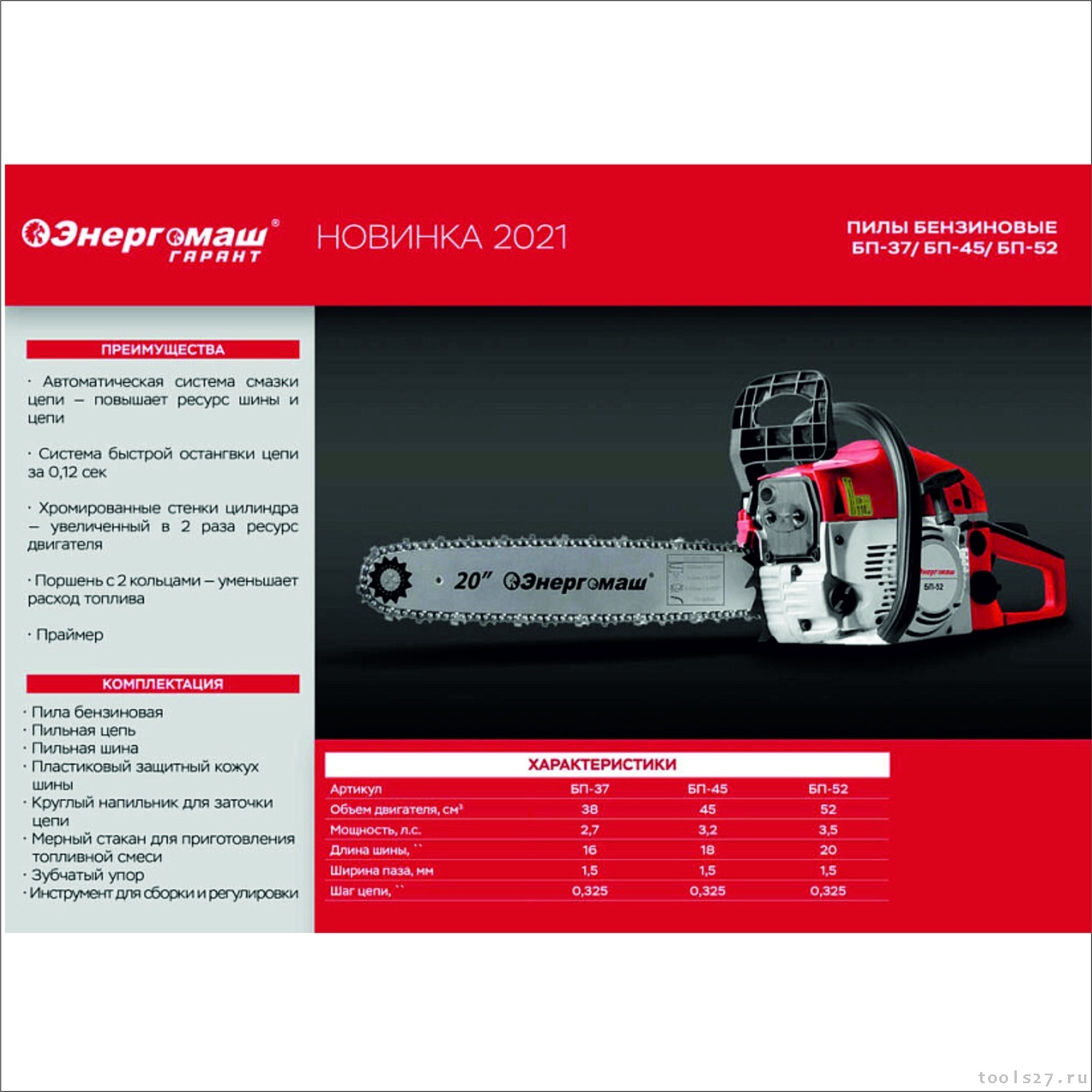 Модель выделяется ускоренным выходом на рабочий режим и высокой скоростью цепи, что увеличивает общую производительность.