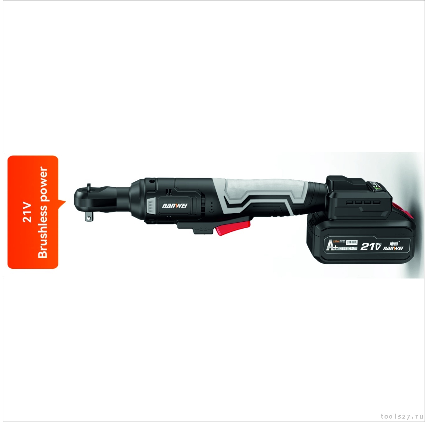 Аккумуляторная трещотка гайковерт угловой 21v 65нм безщет. Nanwei (2172)
