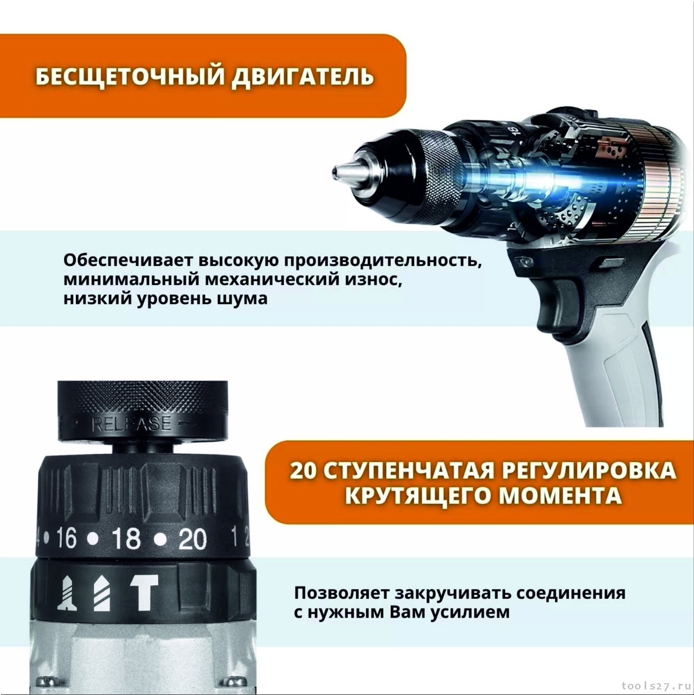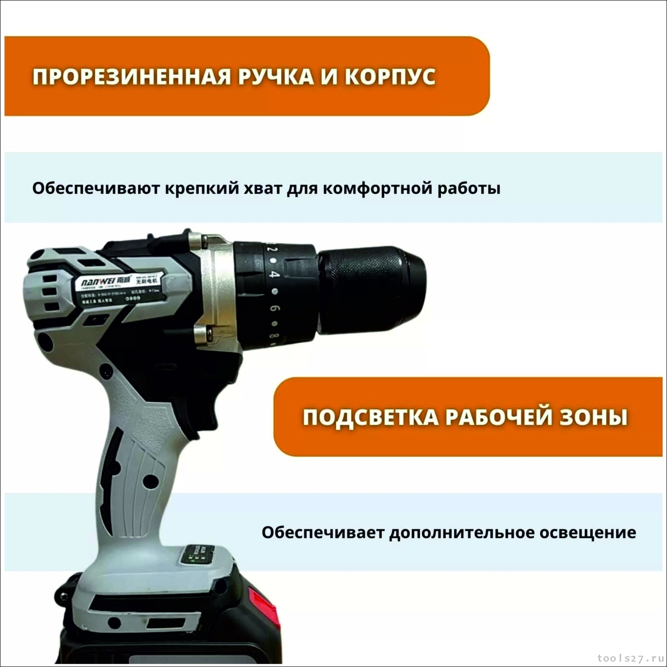 Дрель - шуруповерт ударный аккумуляторный Nanwei d5163hc 16,8 В - бесщеточный (Батарея 2.0ah x2) (2175)