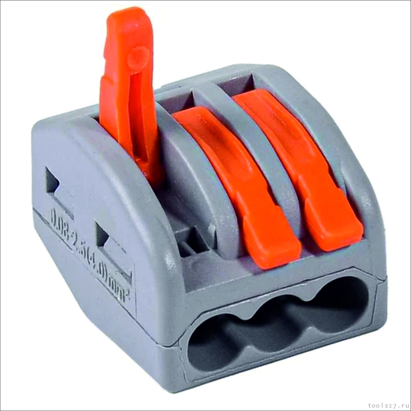 Клемма соединительная предназначена для соединения и ответвления проводников сечением 0.08-4 мм2. Корпус выполнен из пластика, стойкого к воздействию пламени и ультрафиолета. Механизм клемм гарантирует прочную фиксацию даже при механическом воздействии на проводники. Контактные пластины из луженой меди надежно защищают клемму от окисления.