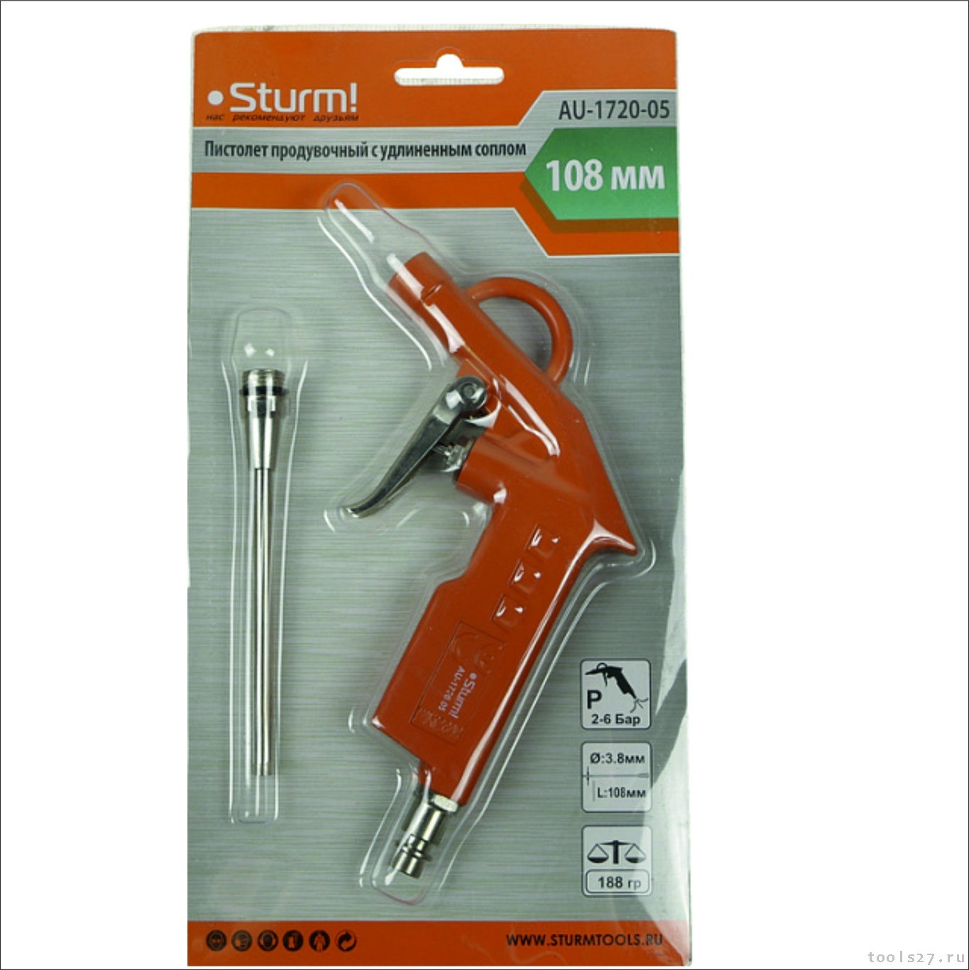 Пистолет продувочный, удлиненное сопло 108 мм, 2-6 бар, d=3, 8мм Sturm! (2211)