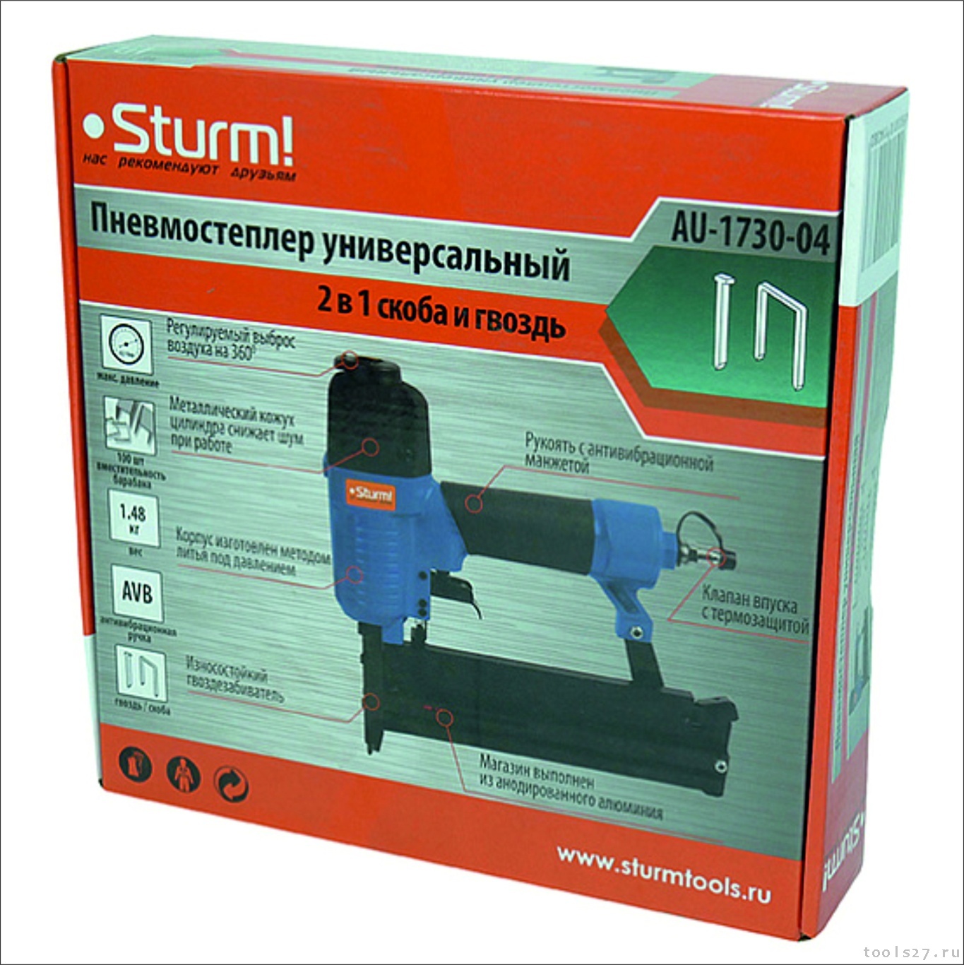 Степлер пневматический универсальный скоба/гвоздь Sturm! AU-1730-04 (2245)