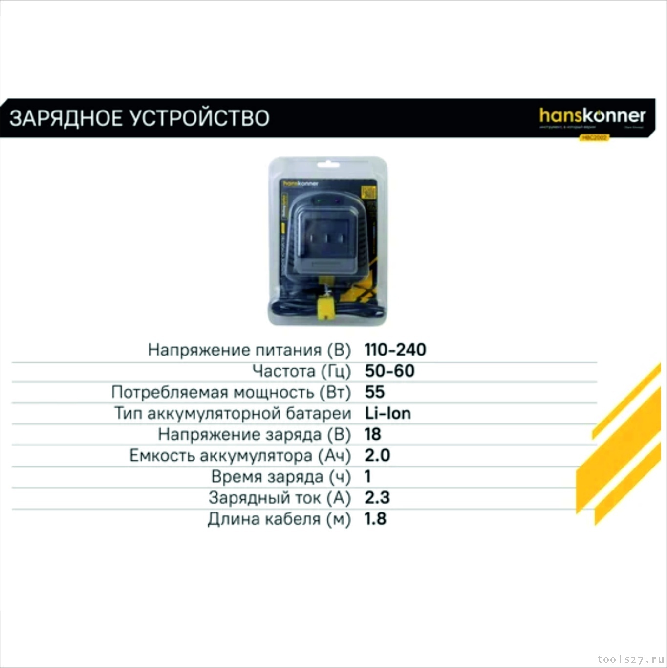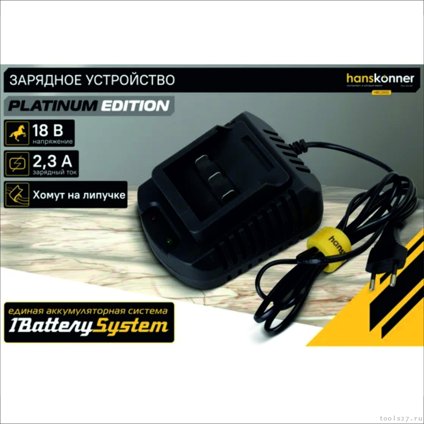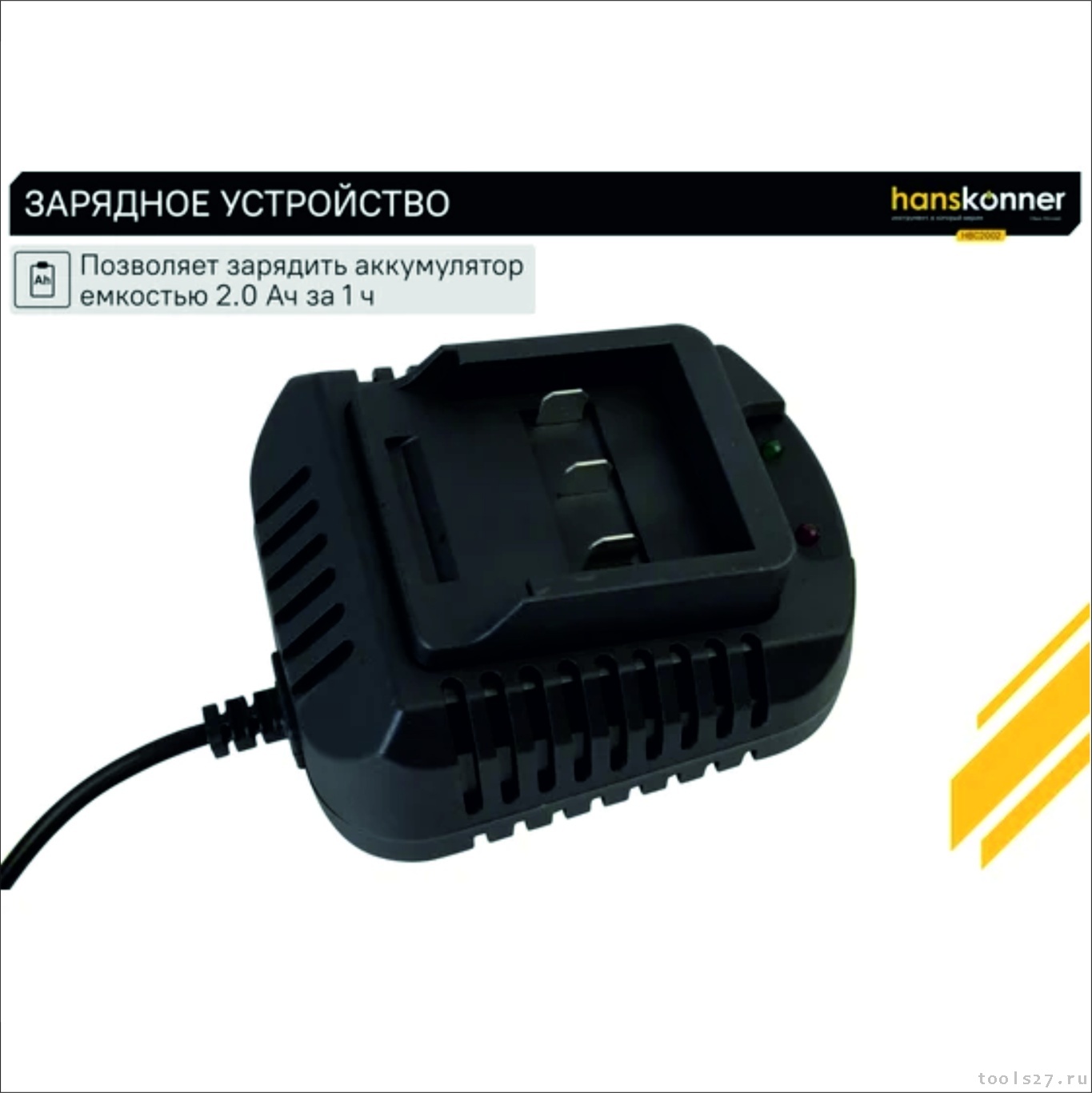 Зарядное устройство Hanskonner, 18В, 1BatterySystem, 2.3A HBC2002 (2265)