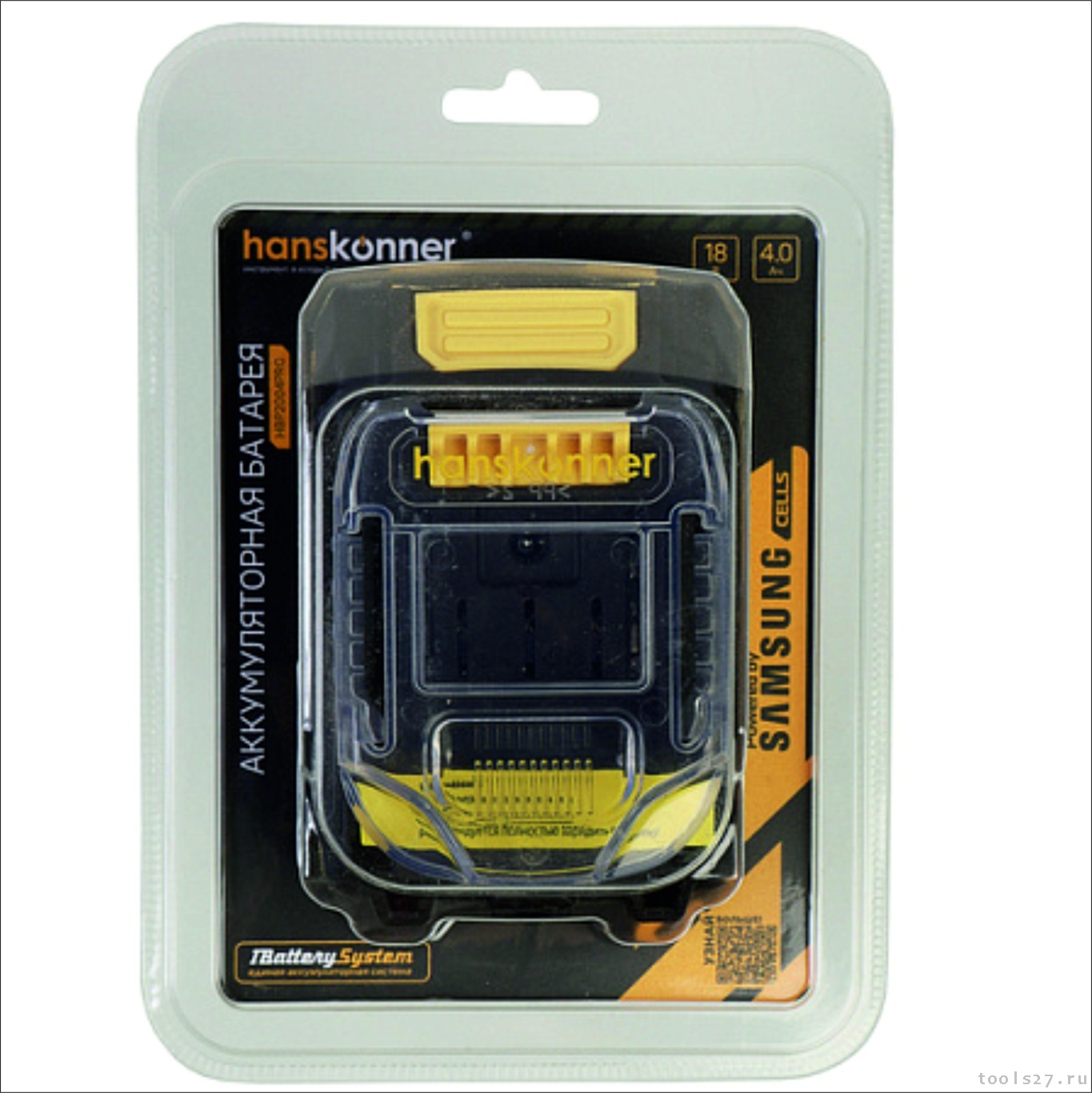 Аккумулятор Hanskonner Hanskonner PLATINUM 18 В, 1BatterySystem, 4.0 Ач, SAMSUNG, блистер HBP2004PRO (2266)