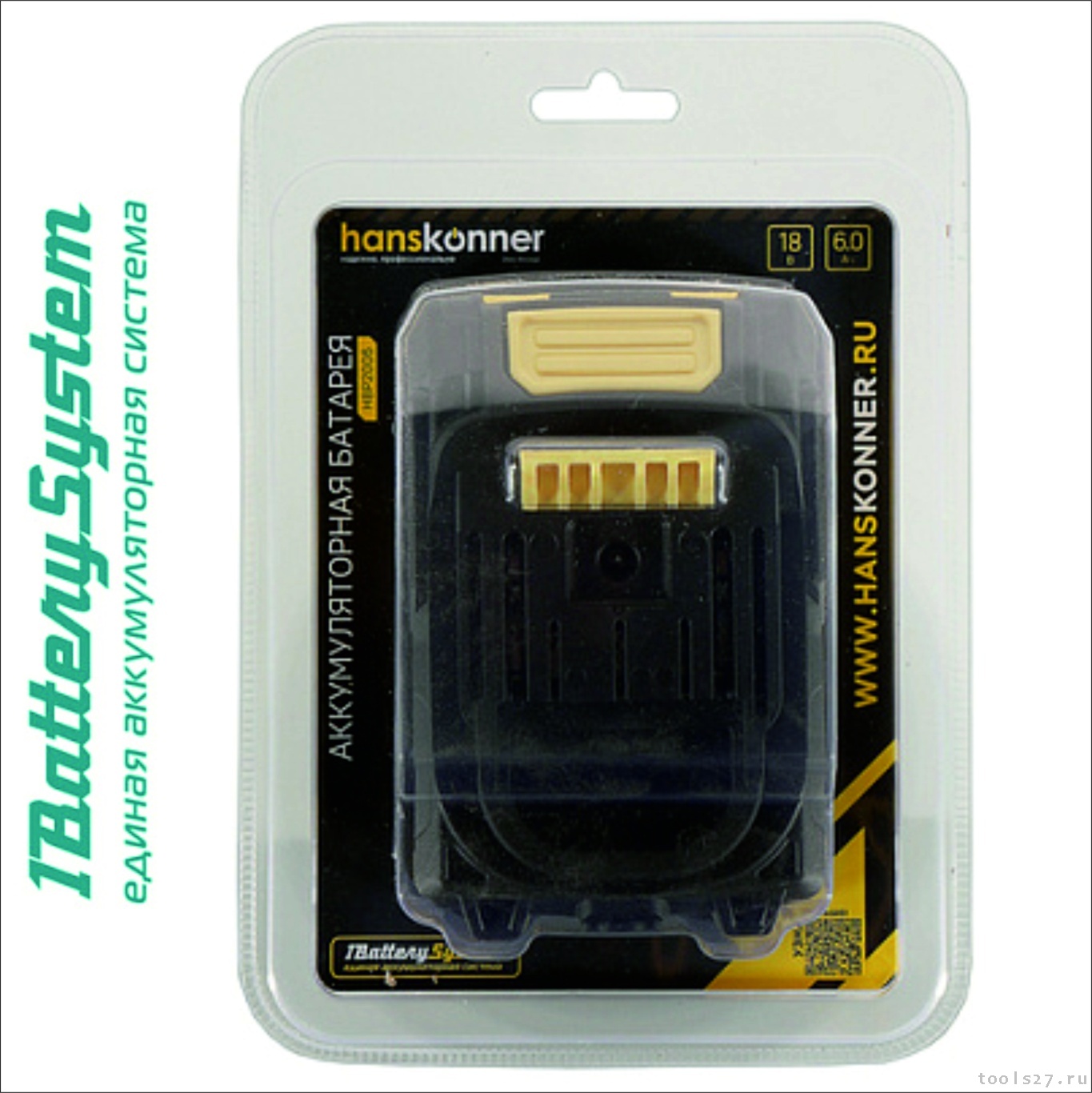 Аккумулятор Hanskonner 18 В, 1BatterySystem, 6.0 Ач HBP2006 (2267)