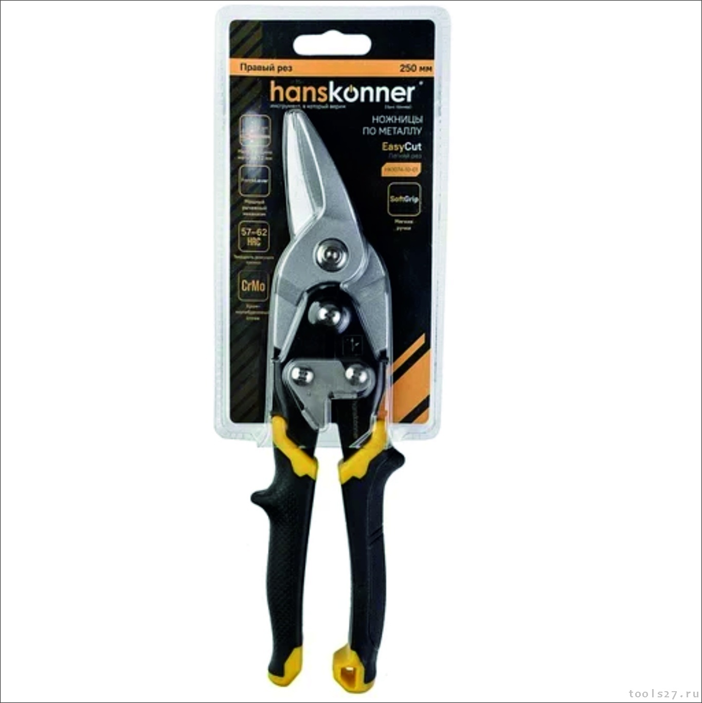 Ножницы по металлу Hanskonner 250 мм, правый рез, усиленные, СrMо HK1074-10-01 (2279)